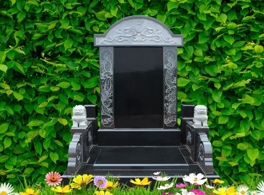 1、墓碑長度1.1m寬0.9m,整套墓碑均采用頂級越南黑石材,屬高端花崗巖石材,產(chǎn)自越南,光面極佳,黑度純、光澤度高,可清晰鑒人,石材結(jié)構(gòu)耐磨損和抗腐蝕性極高。